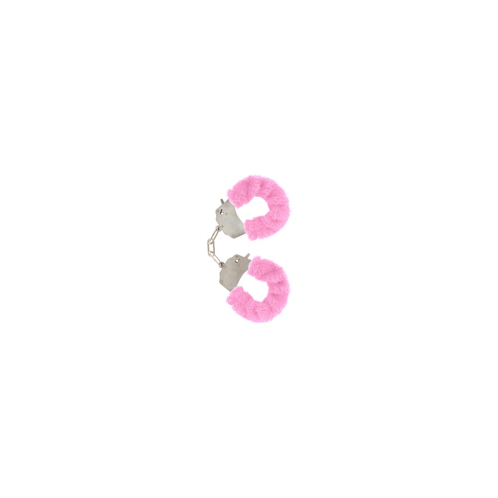 FURRY FUN CUFFS PINK PLUSH son unas esposas de muñeca de dos piezas unidas con una cadena de acero cromado, recubiertas con un suave peluche alrededor de los puños de color leopardo.