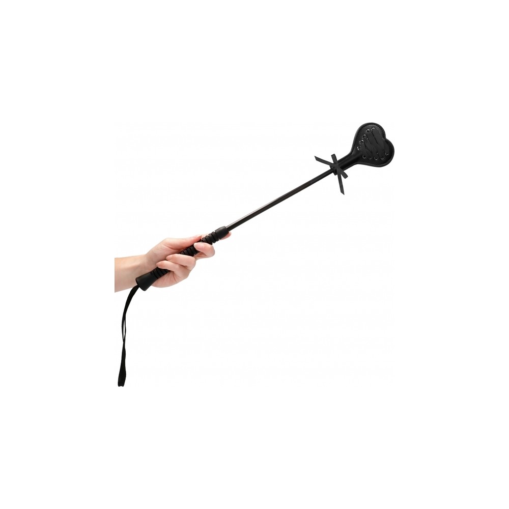 Esta fusta con forma de corazón de mango largo con encaje negro es la manera perfecta de disciplinar a tu pareja.