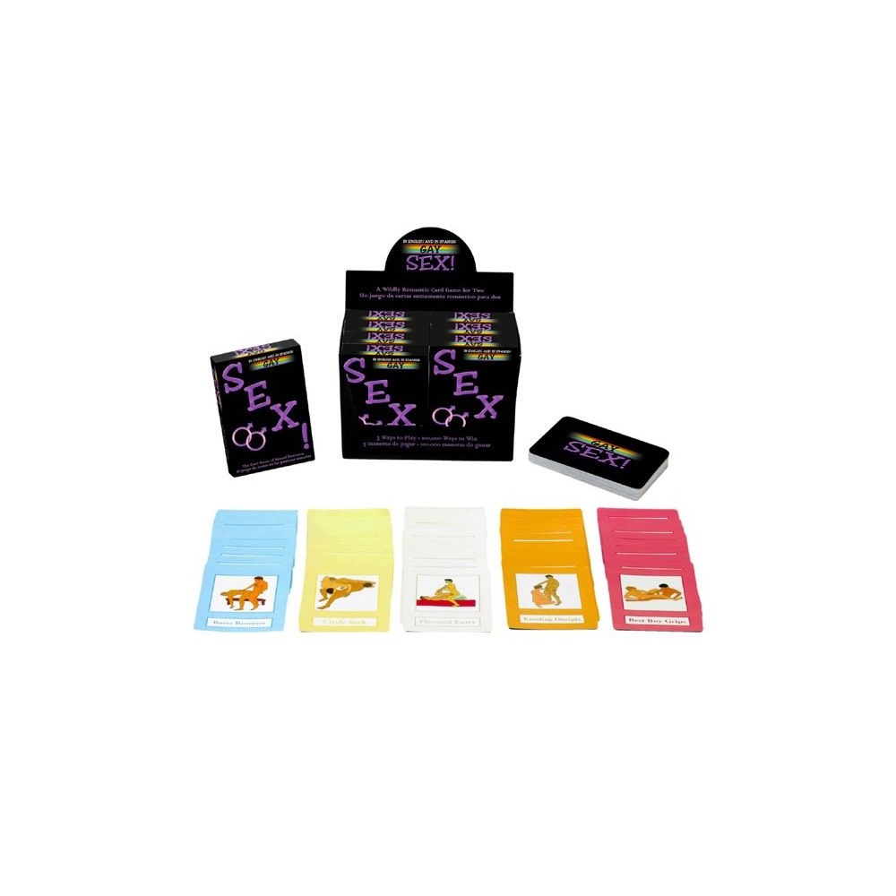 NAIPES DE SEXO GAY, un alocado y romántico juego de cartas para dos muy divertido Cada carta ilustra una actividad de estímulo sexual o una posición sexual. Al jugar una de las tres cartas, usted y su pareja usarán las cartas para planear una de las 100.000 fantasías posibles. Después de construir una fantasía, ambos la realizarán.