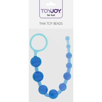 THAI TOY BEADS BANGKOK BLUE son un juego de bolas chinas con 10 esferas de diámetro ascendente, gelatinosas, unidas a lo largo de 25 centímetros.