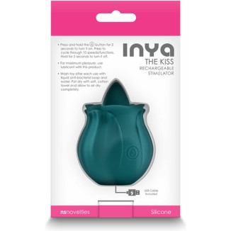Beso de INYA. Diseño atractivo y compacto, el Kiss estimula el clítoris, u otras partes erógenas como glande o pezones, con rápidas vibraciones en la lengua para un clímax intenso. Hecho de silicona suave, es recargable y apto para viajes.