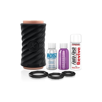 Se recomienda un lubricante a base de agua. El set también incluye 3 anillos de pene de diferentes diámetros, líquido limpiador, lubricante y polvos Fanta Flesh para mantenimiento de las primeras veces.